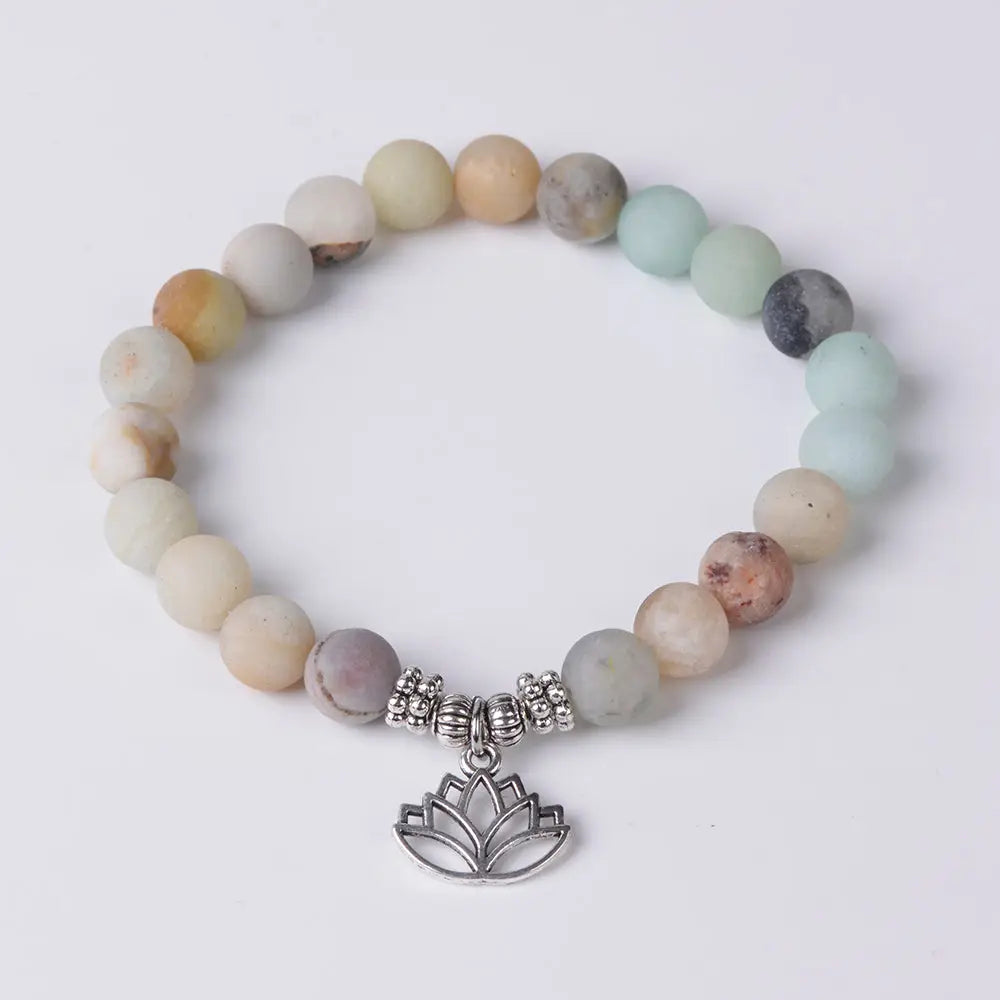Our natural yoga healing bracelets are designed to promote a positive and healthy lifestyle. They can be worn for meditation and relaxation. Made of genuine amazonite, the bracelet comes with an ohm, buddha, or lotus charm. By wearing them you'll be able to easily live an active and healthy life with the positive vibes that amazonite gives you.