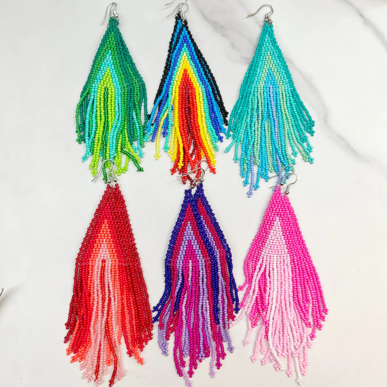 Beaded BoHo Fringe Earrings - 6 Pairs