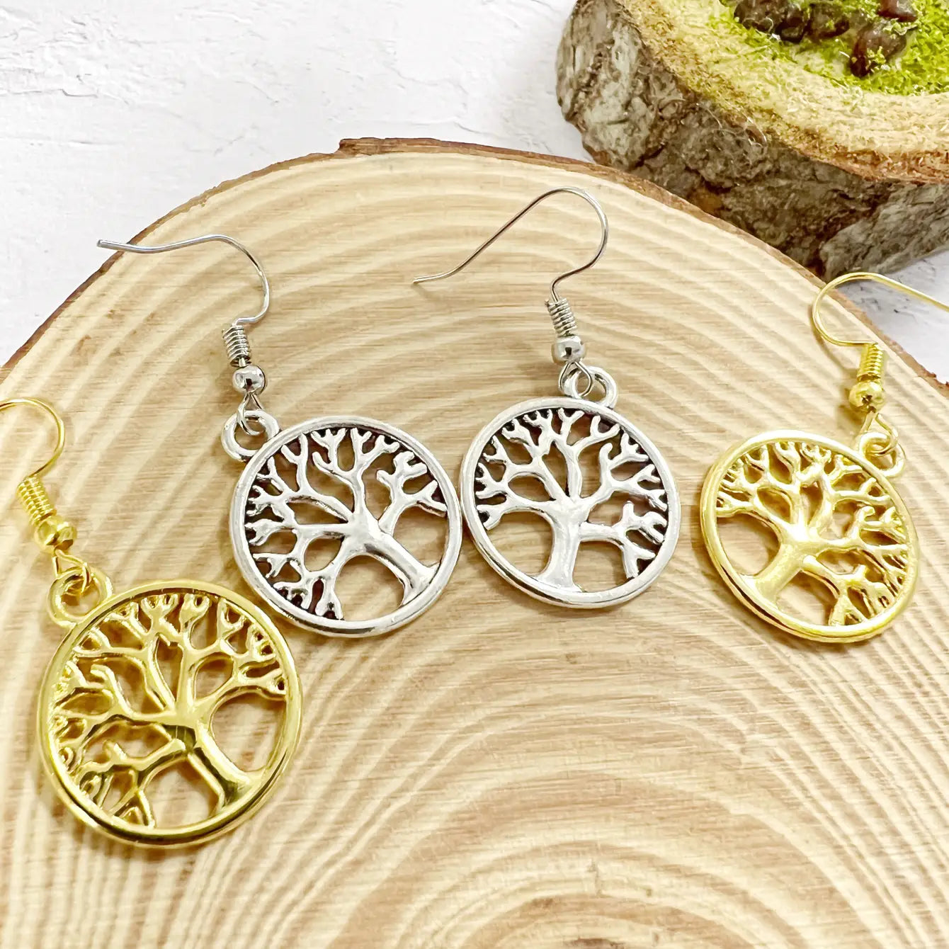 Elevate your style with our tree of life earrings - an embodiment of natural beauty and spiritual symbolism. Available in both silver and gold colors, these earrings are more than just accessories – they are a reflection of your connection to the universe and the eternal cycle of life.