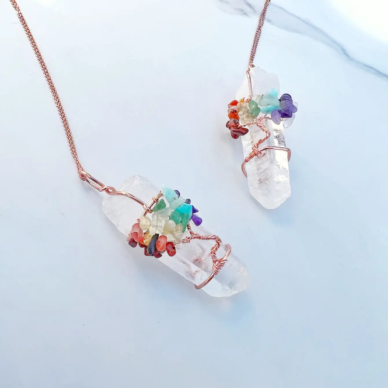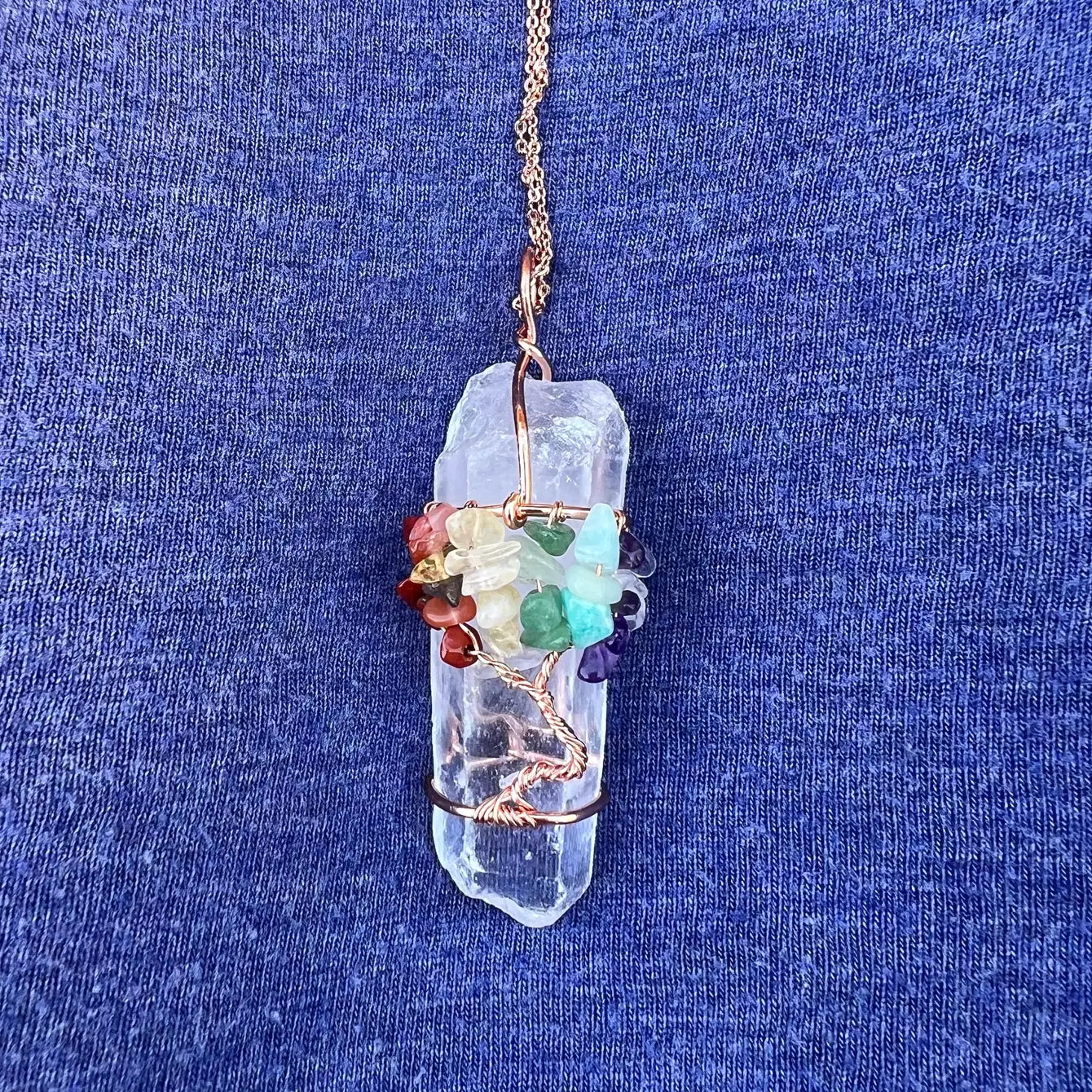 Get in touch with your spiritual side with this crystal 7 chakra necklace! Our chakra tree of life necklace is wire wrapped and boasts a striking dagger design. It's perfect for connecting to the universal energy and helps you stay balanced and grounded. With this beautiful piece, you'll feel more empowered and confident in your day-to-day life. Harness the power of the universe with crystal 7 chakra necklace today!