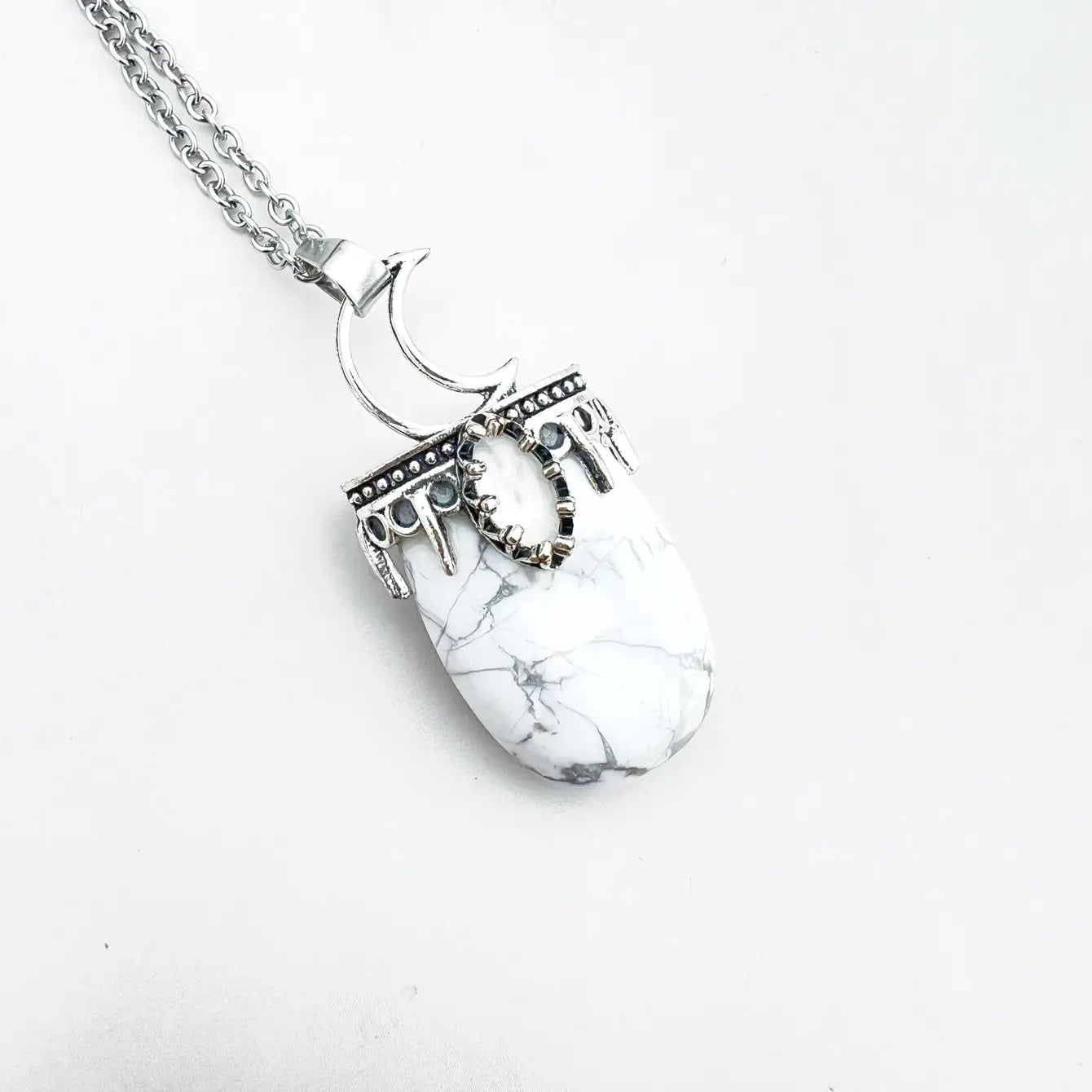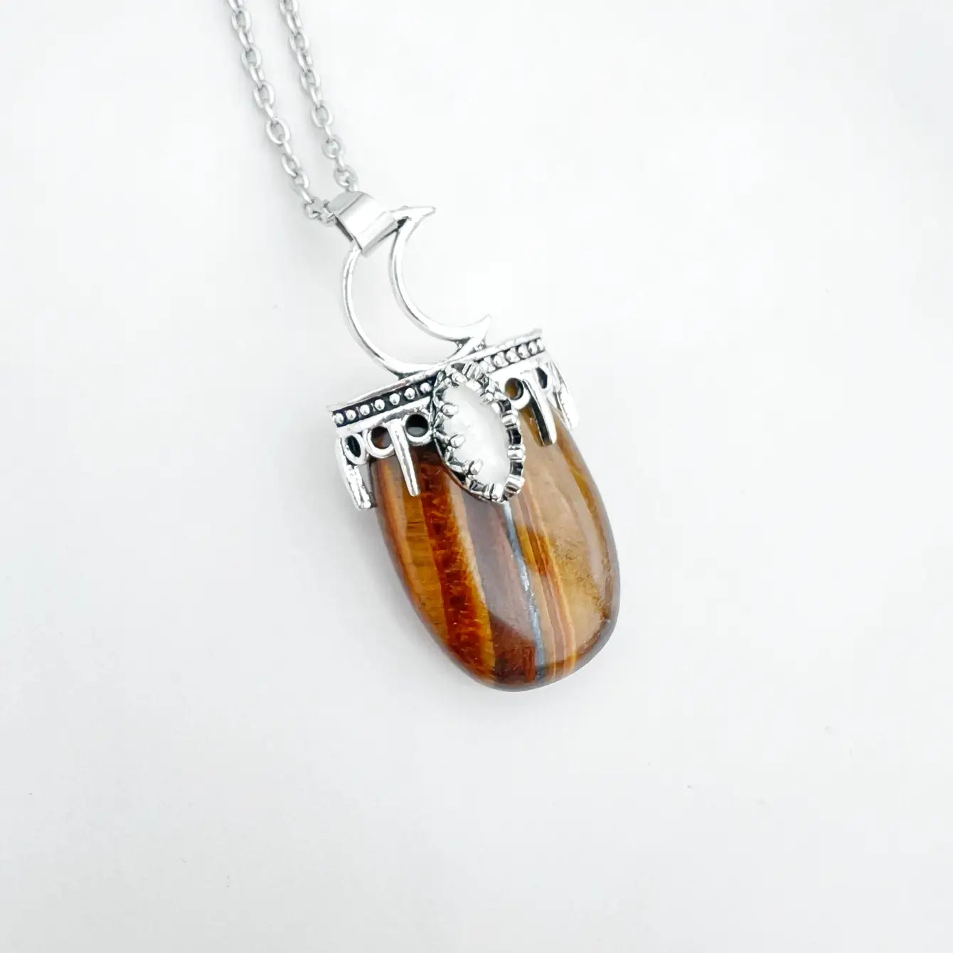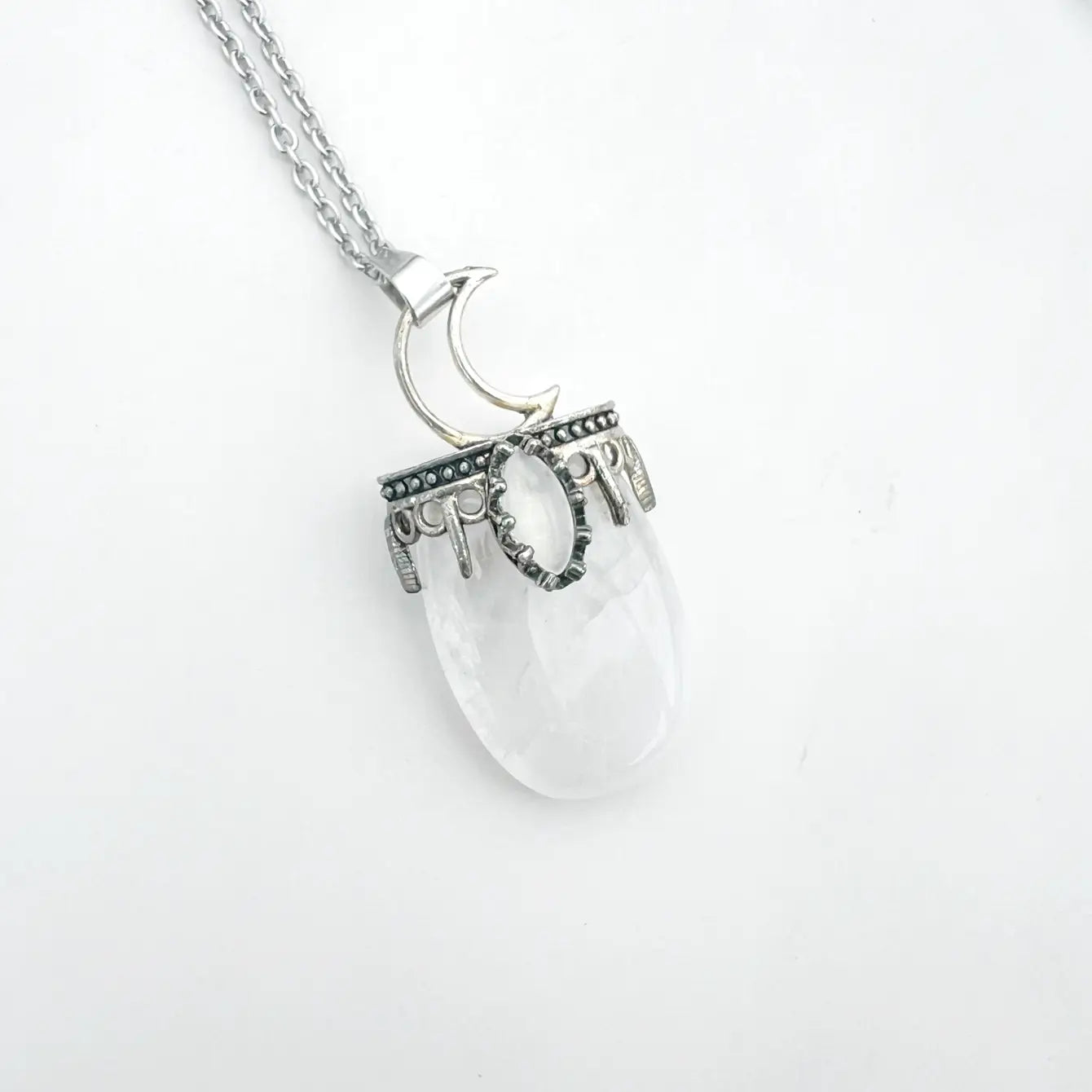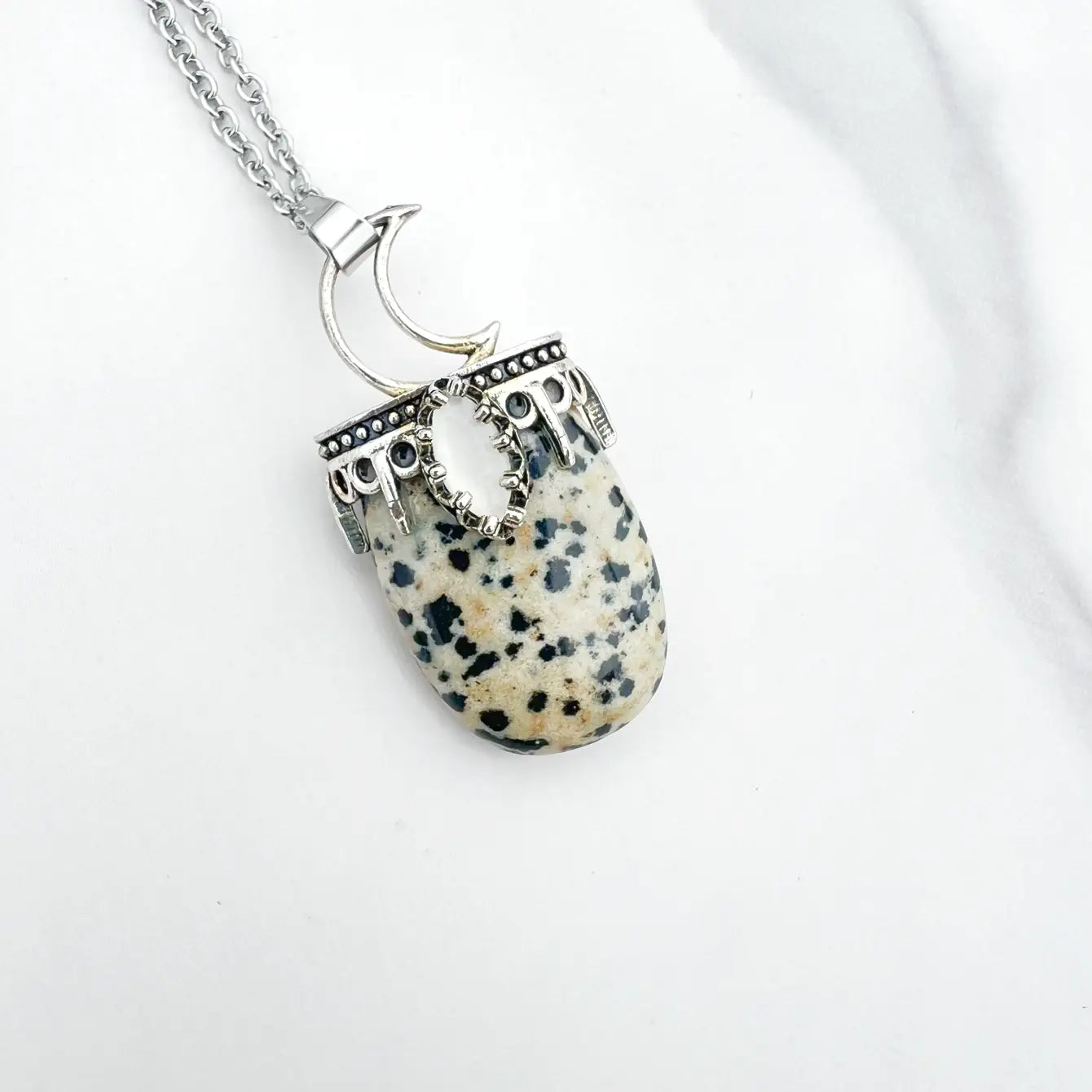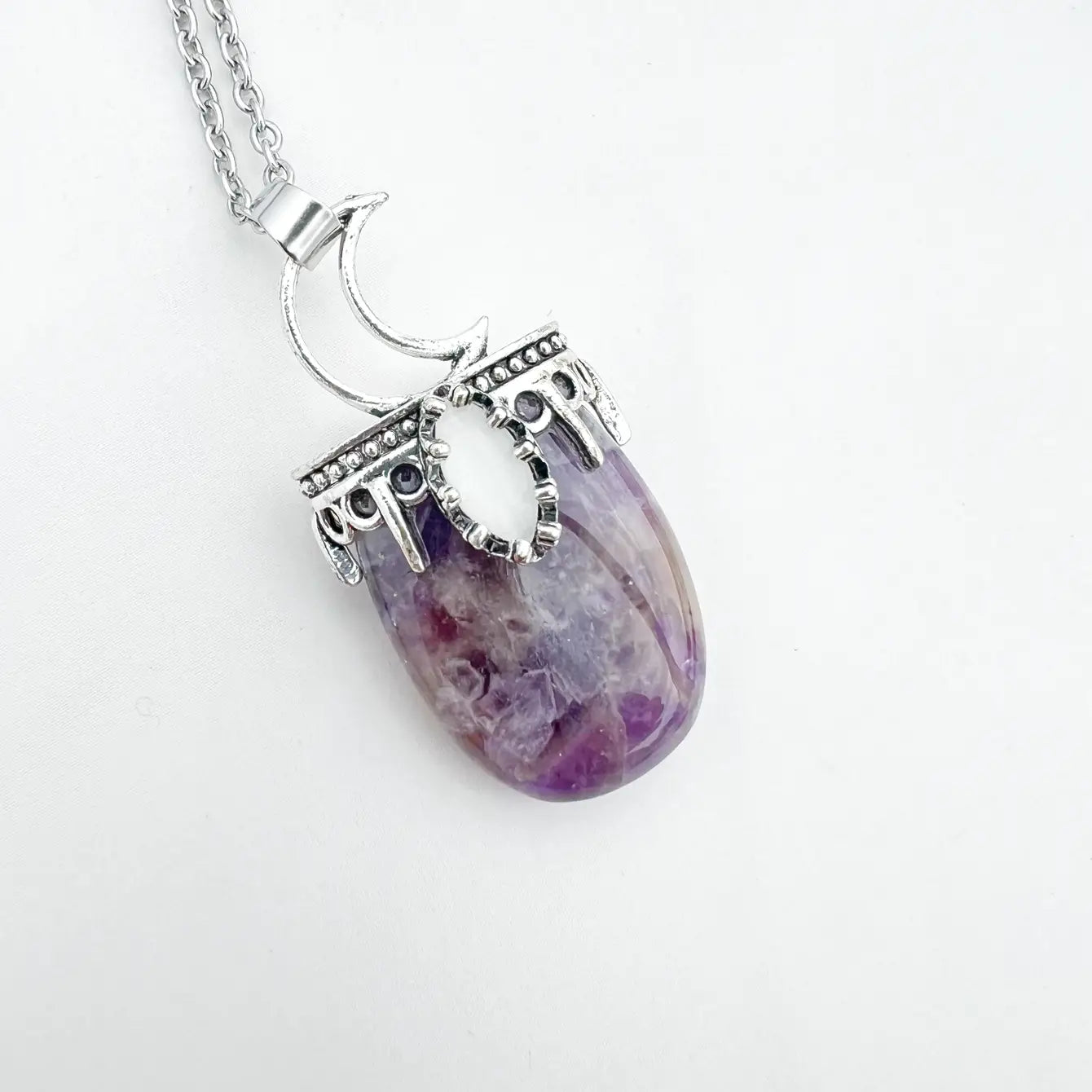 No matter how dark the night, you'll always be able to see the starlight with this elegant and beautiful crescent moon necklace. The moon shines light on your path, guiding you through whatever life has to offer. Bring in the stars with this beautiful pendant, a perfect gift for someone who's living their best life. This antique silver crescent moon necklace has gemstone underneath it and embedded an opal stone on the front. Comes with stainless steel chain, it is a must-have for all you fashionistas out there. You can wear it everyday, rain or shine, and you'll always feel like the moon is shining down on you!