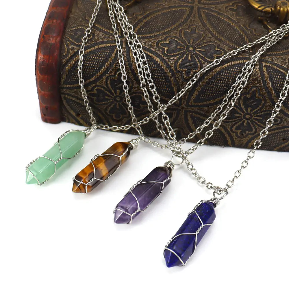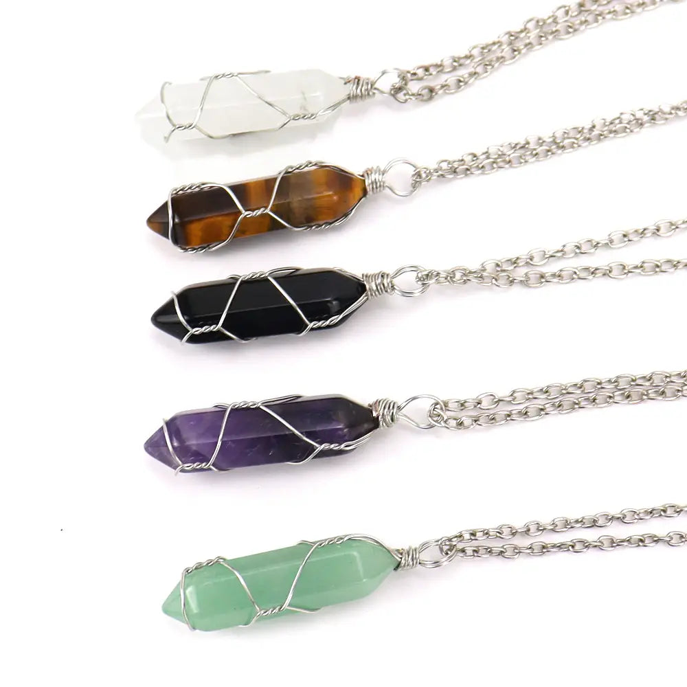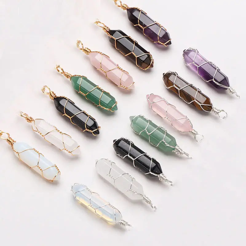 Crystal Wire Wrapped Necklaces - Assortment 12 Pcs