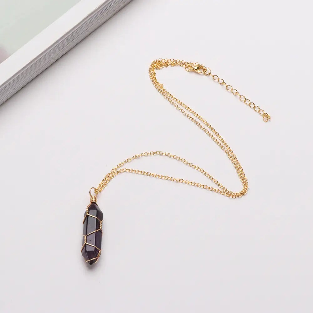Creating a necklace that combines both beauty and strength, this wire wrapped crystal point necklace is made in stainless steel with 20-inch chain. The final product is not just a beautiful piece of jewelry, but also a long lasting one that can withstand the harshness of daily wear.