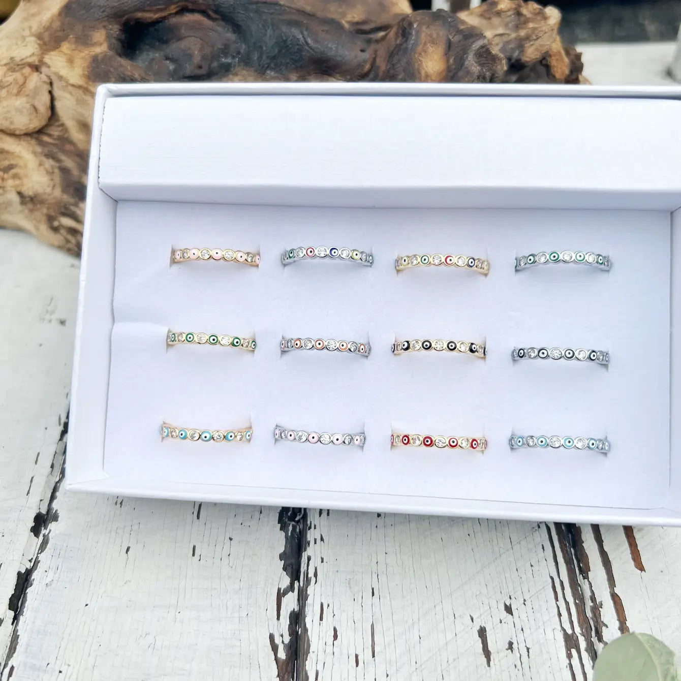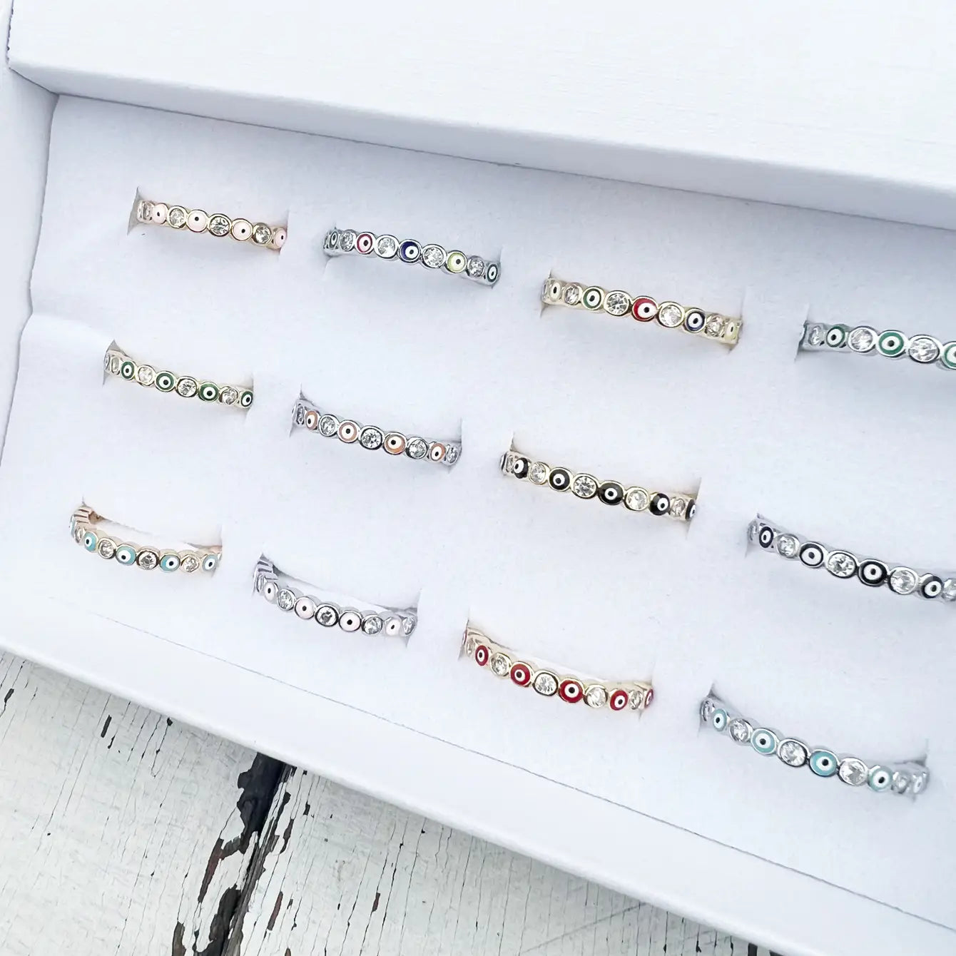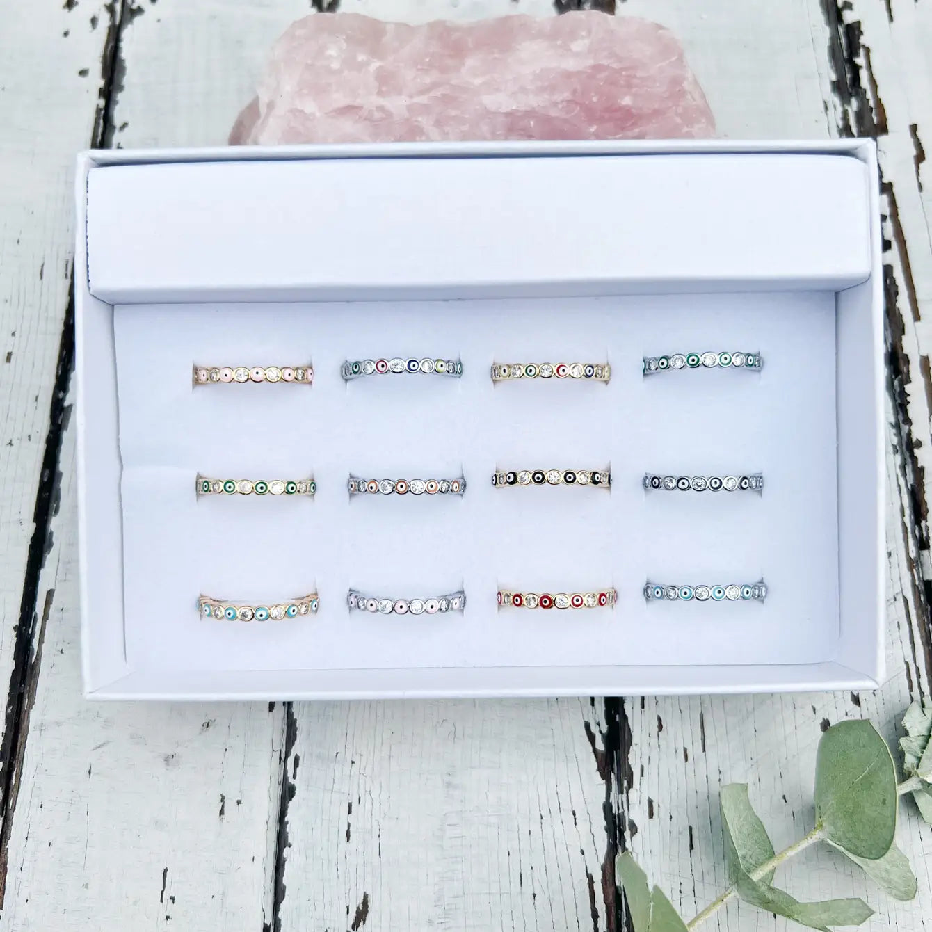 Evil Eye Open Ring Set - 12 Pcs With Ring Tray
