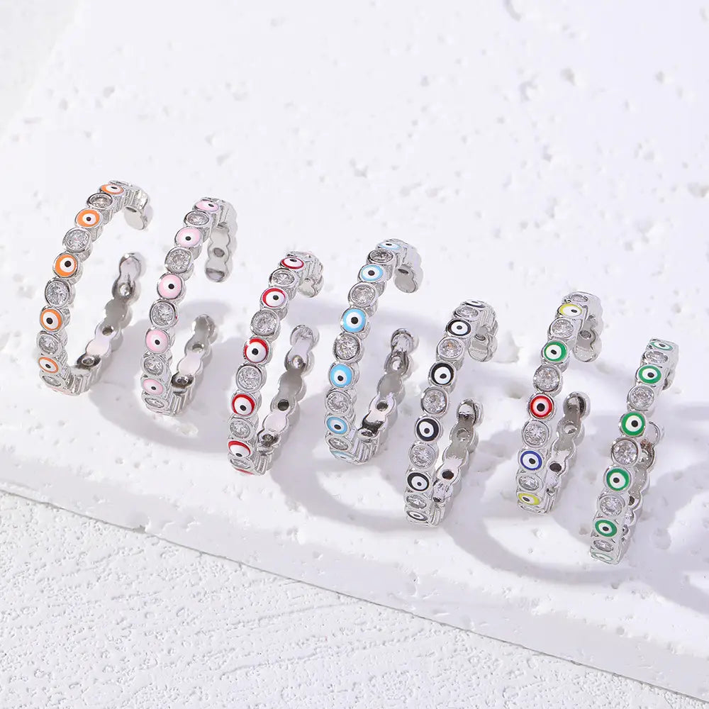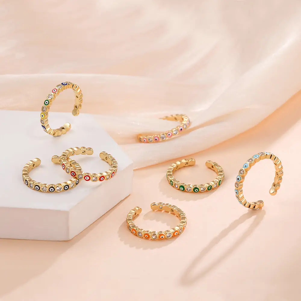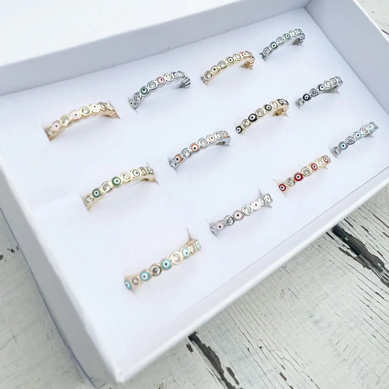 Evil Eye Open Ring Set - 12 Pcs With Ring Tray
