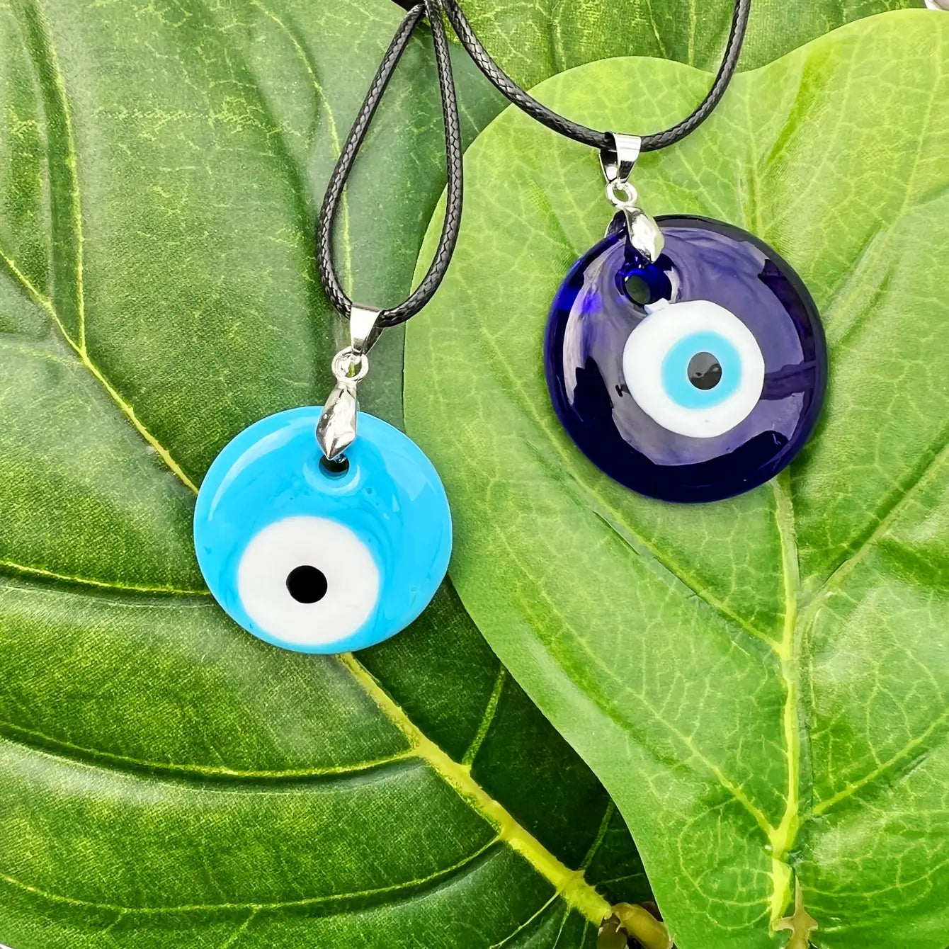 The necklace is handmade with an evil eye glass pendant, which is believed to protect the wearer from negative energy and bring good luck. The pendant is attached to a soft and durable leather rope, which gives it a unique rustic charm. The leather rope is adjustable, allowing you to customize the length of the necklace to your liking.