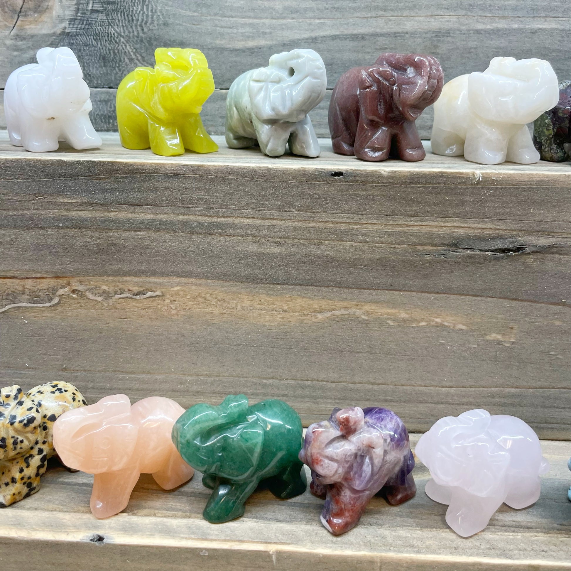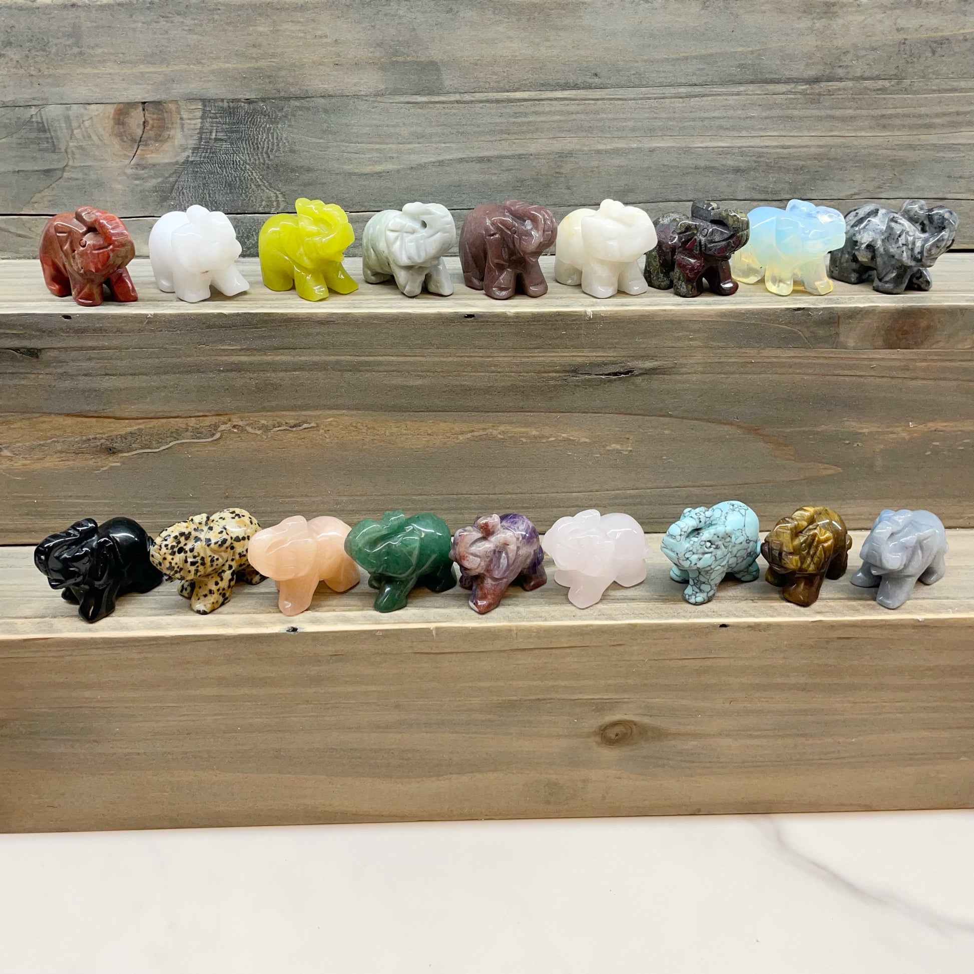 Gemstone Hand Carved Elephant Figurine - Assortment 12 Pcs