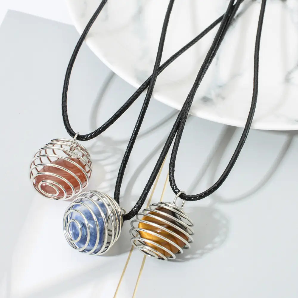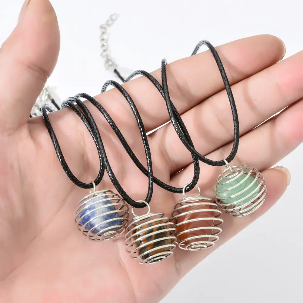 Gemstone Spiral Cage Necklace - Assortment 12 Pcs