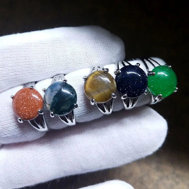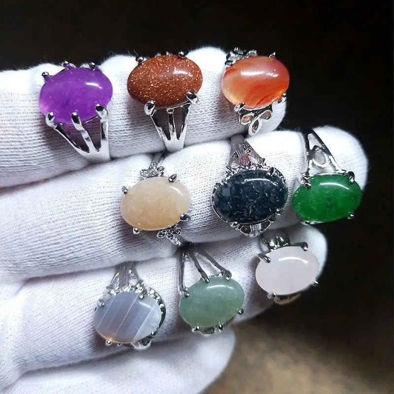 Affordable yet luxurious, these classy rings will be the shining star of your jewelry collection.All of our rings are silver plated and have a decent size stone on it. Our gemstones are just so special and beautiful, making these rings a true one of a kind. The silver plating won't tarnish or corrode, so your ring will always look like new.Enjoy a wide range of designs to match your mood and personality!