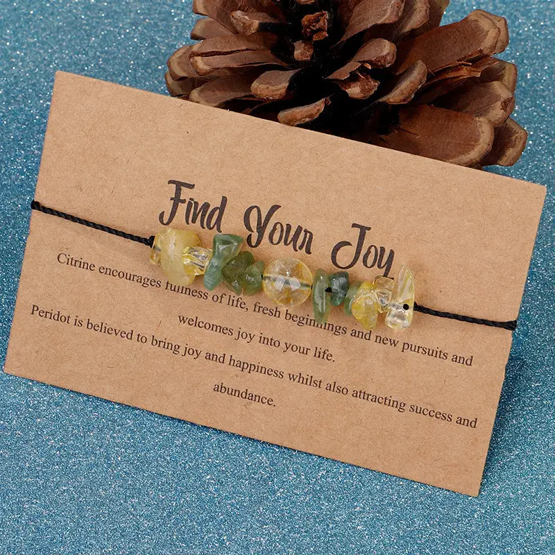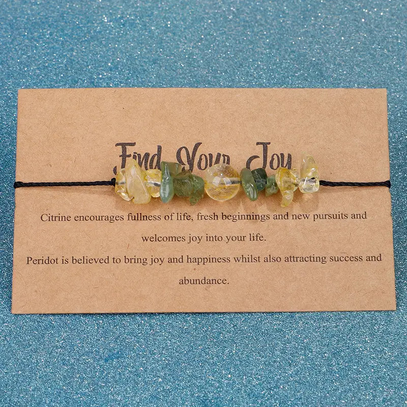 Are you looking for a new way to work with energies and feel more grounded while doing so? Try the motto bracelets! These bracelets are designed to help you focus on what motto is most important to you. We offer a variety of different kinds of bracelets, each with its own motto focus and embellished with real gemstones. One pack contains 6 bracelets with adjustable ends to fit everyone.