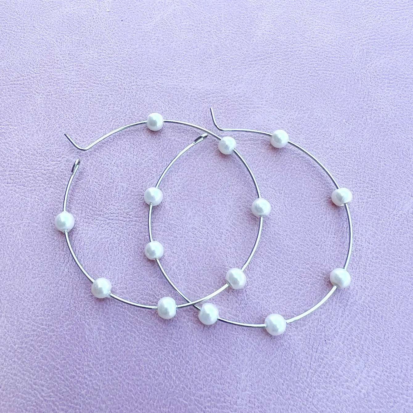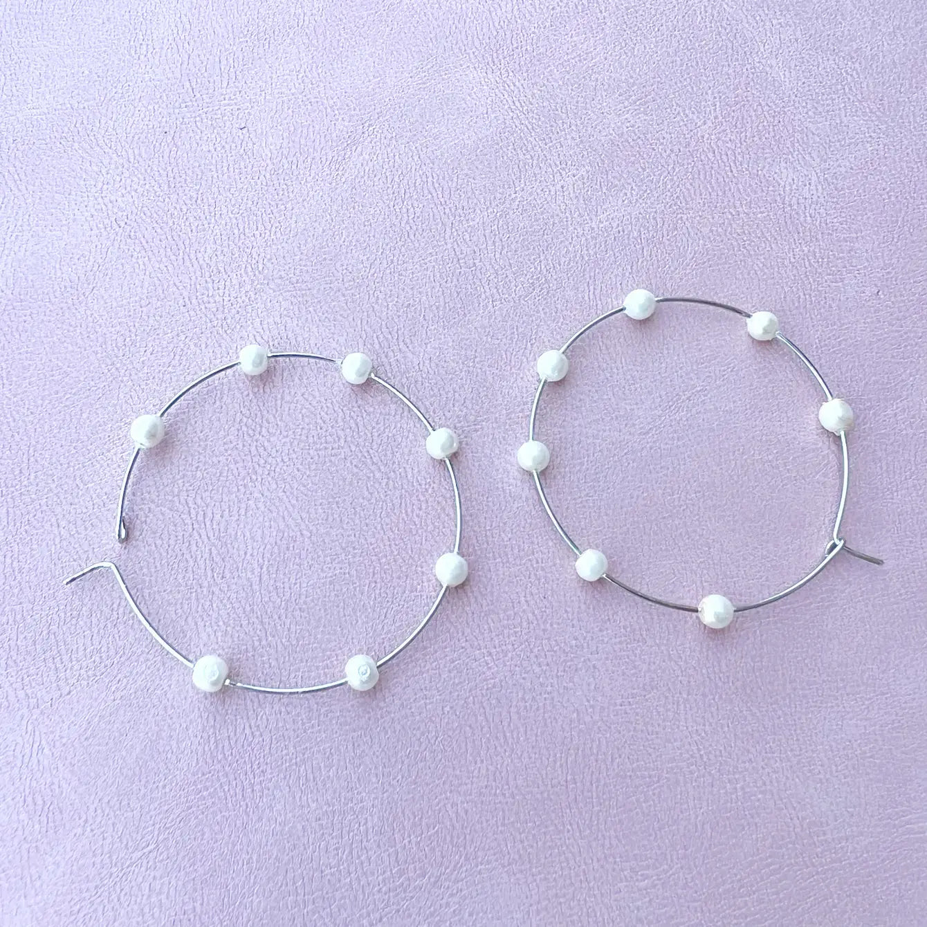 Our elegant Pearl Hoop Earrings in a set of 5 gold and 5 silver, a perfect blend of classic sophistication and modern style. These earrings effortlessly combine the timeless beauty of pearls with the contemporary allure of hoop design.