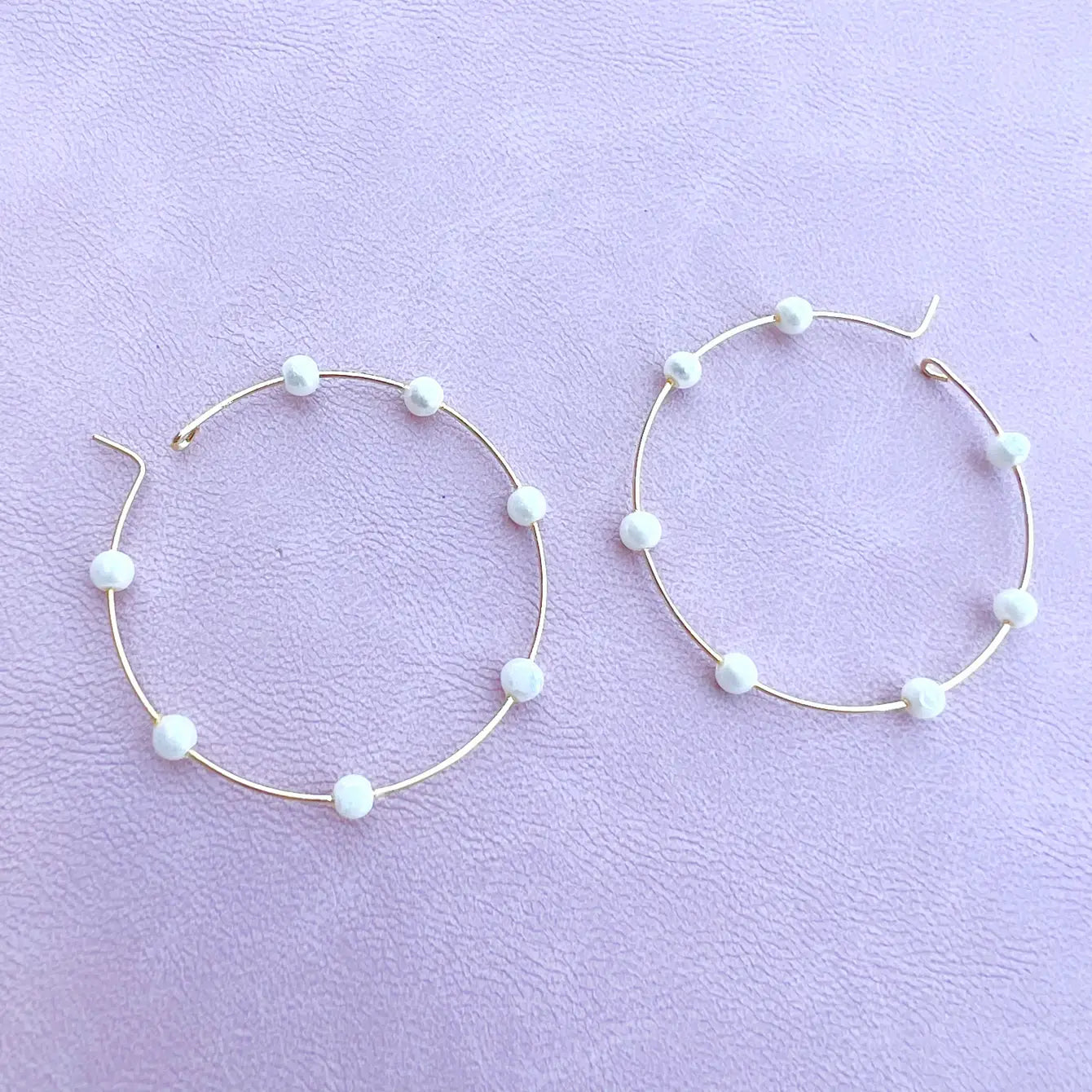 Each earring features a delicate hoop crafted from high-quality gold or silver-plated metal, creating a polished and refined look. The hoops are the perfect size to frame your face and add a touch of glamour to any ensemble.