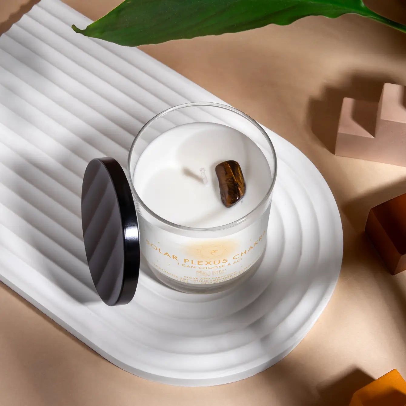 We are inspired by luxurious notes of clove and cardamom scents to bring this candle to you. Additionally, there are surprise tumbled crystals inside connected with this chakra.